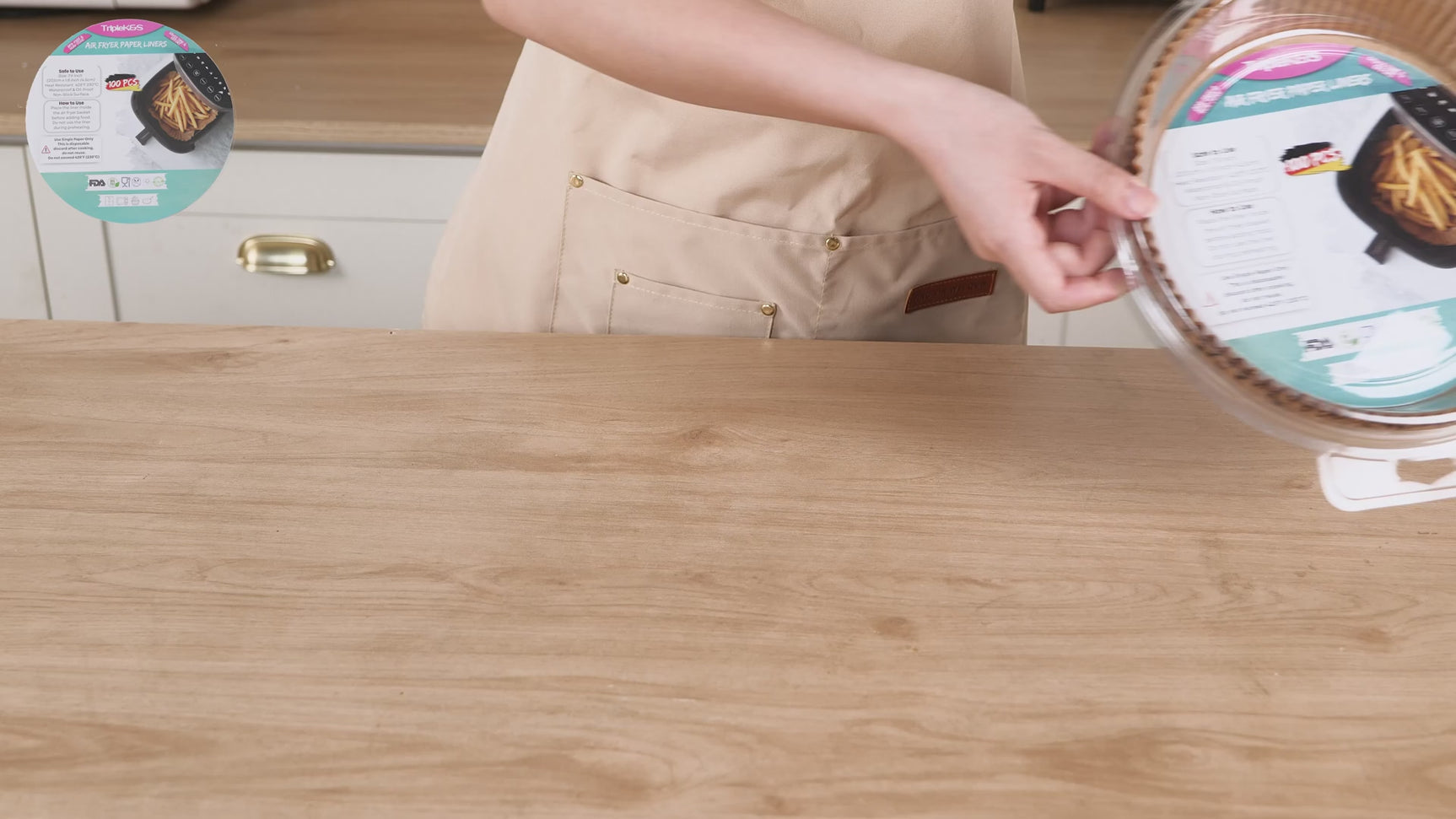 Mit den hochwertigen TRIPLE K&S® Airfryer Backpapier Linern genießen Sie knusprige Speisen ohne Ankleben, ohne lästige Reinigung und mit weniger Ölverbrauch.